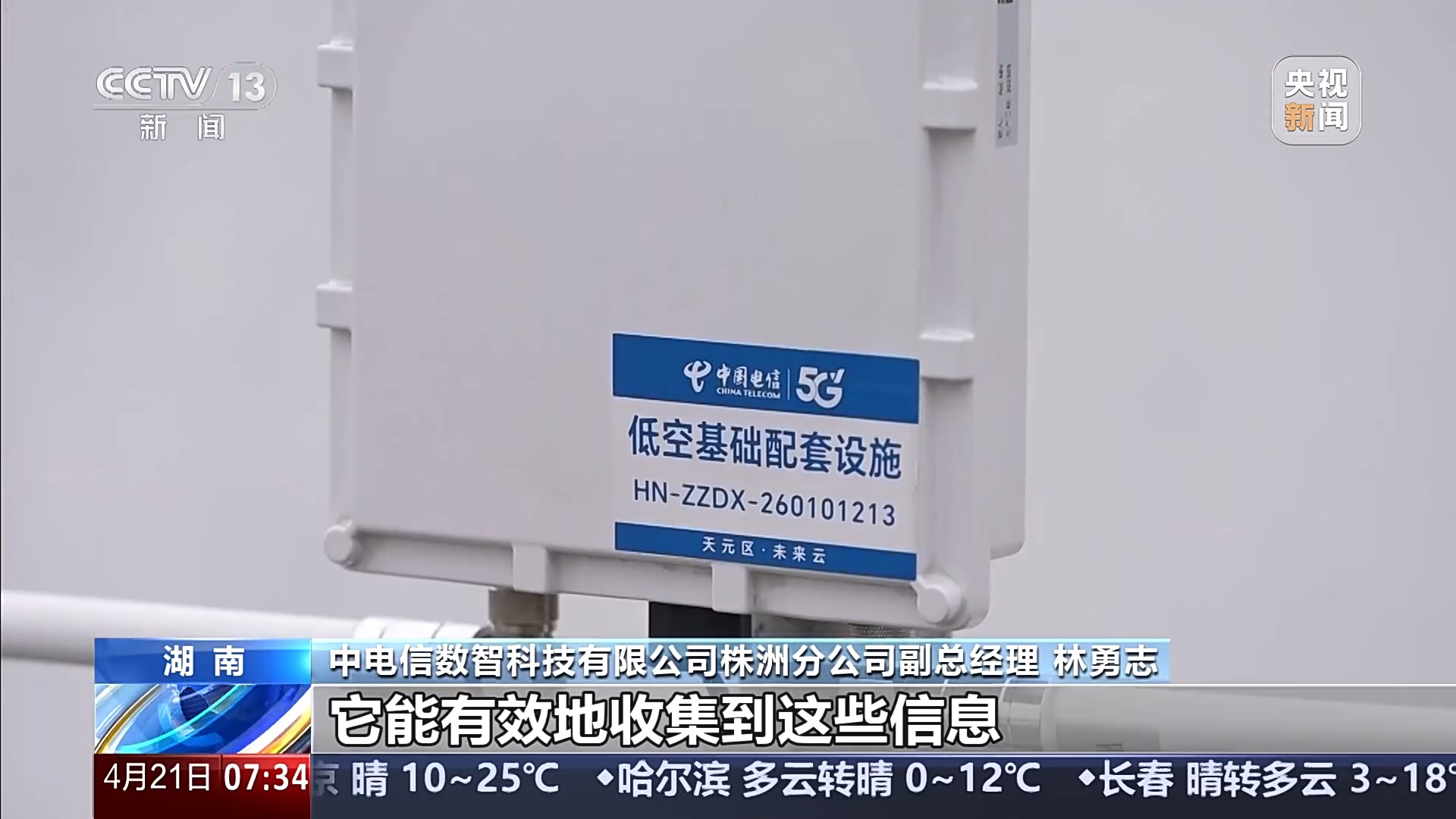 中电信数智科技有限公司株洲分公司副总经理 林勇志:空中飞的无人机,跟地面跑的汽车一样,都有自己的“车牌”和“行车记录仪”。那么我们这台设备,能有效地收集到这些信息,避免空中交通安全事故的发生。